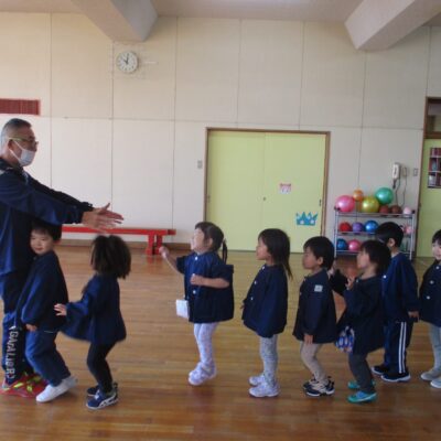 リトミック遊び🌟2025.01.17今日のできごと今日はお遊戯室でリトミック遊びをしました✨ピアノの音に合わせて身体を動かして楽しみました。足先、手先まで意識して取り組んでいましたよ。最後は「なべなべそこぬけ」をしました。2人1組、3人1組、5人1組・・と人数を増やしていき、ラストは全員で!!💛みんなで息を合わせて見事、大成功でした🌟今日のできごと楽しい外遊び(リスも遊びに来ました)💛前の記事3学期スタート!🌟次の記事