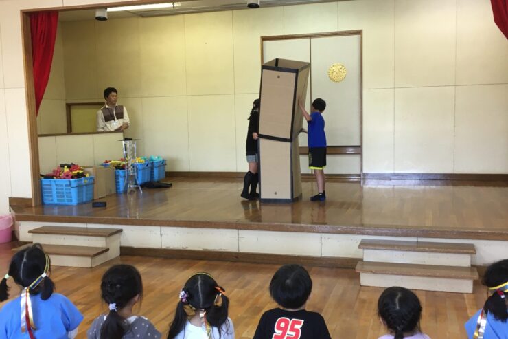 本の中からお菓子が出てきたり、段ボールの中から人が出てきたりすごいマジックがいっぱいでした。