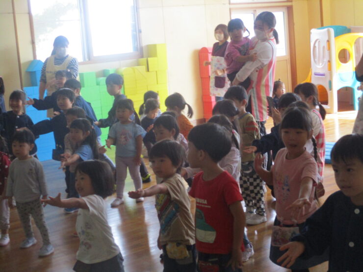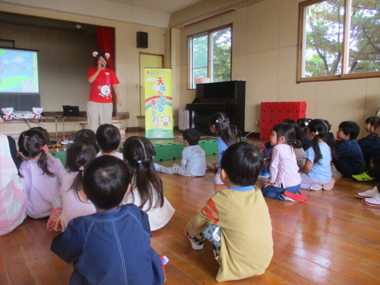 MCのお姉さんがダンスを教えてくれたり、大きなスクリーンで絵本を読み聞かせてくれたり、とても楽しい一時でした✨