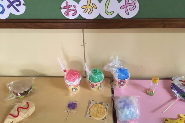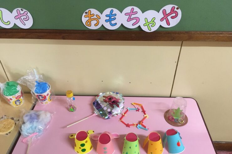 廊下には明日のちびっこ祭りの商品が飾られていました。今からほしいものを決めている子もいるようです💛