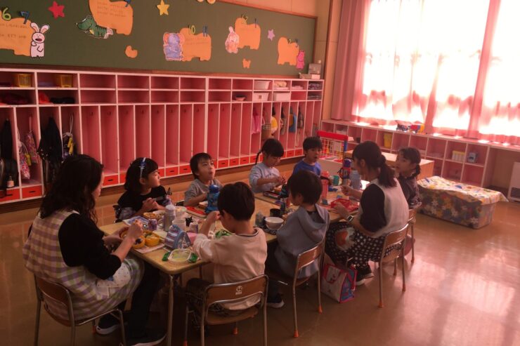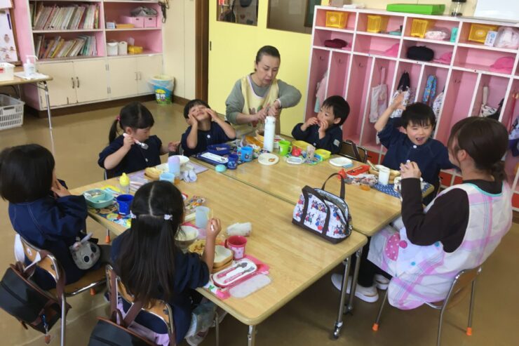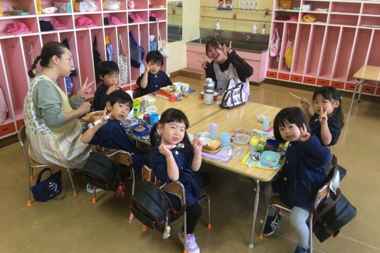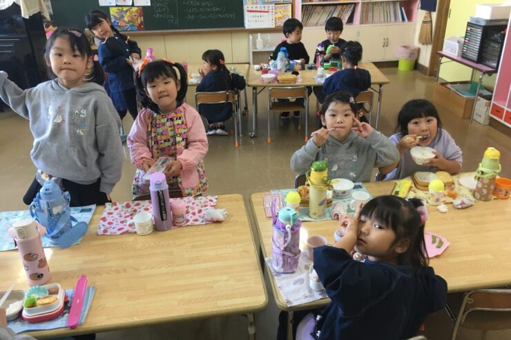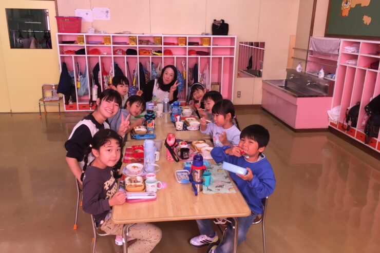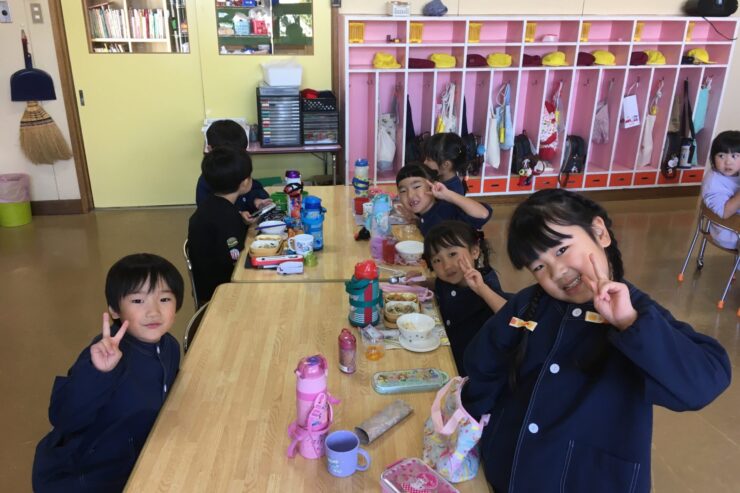 お昼ご飯の様子も見てきました。みんな楽しく美味しそうに食べていていました。