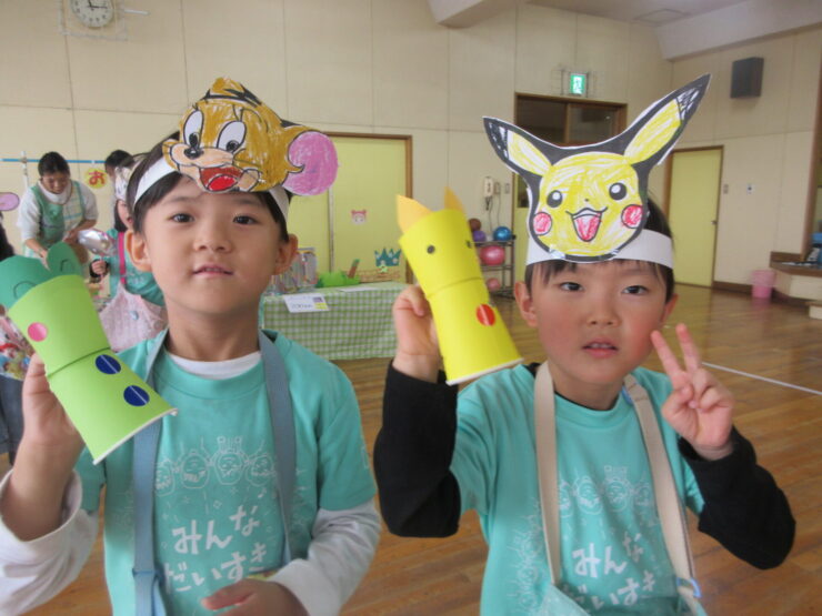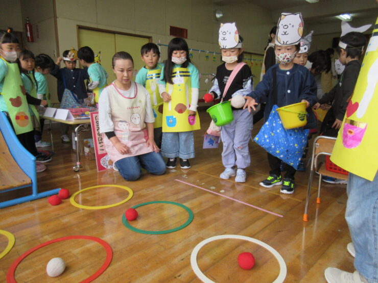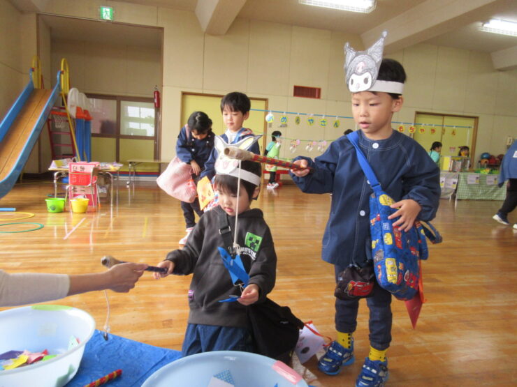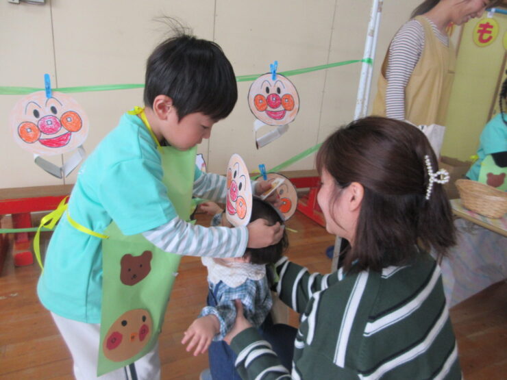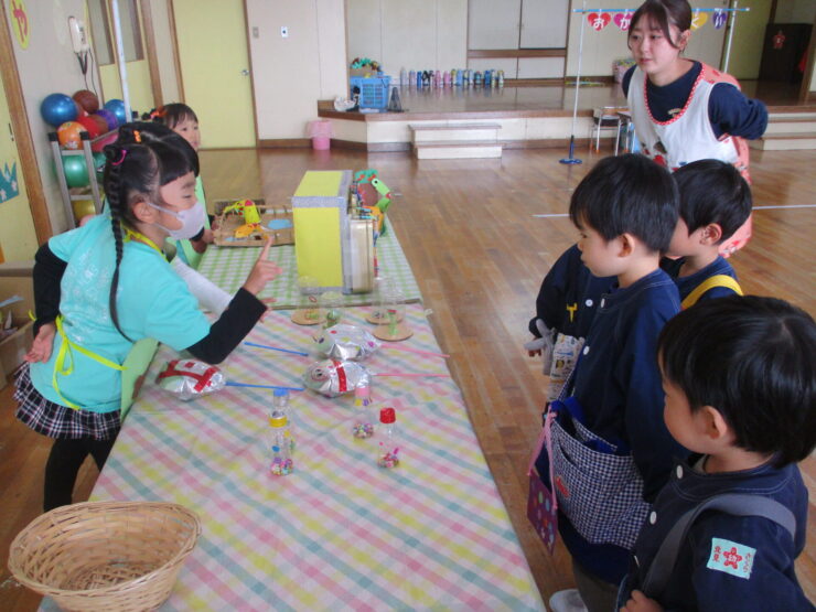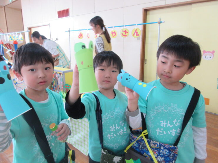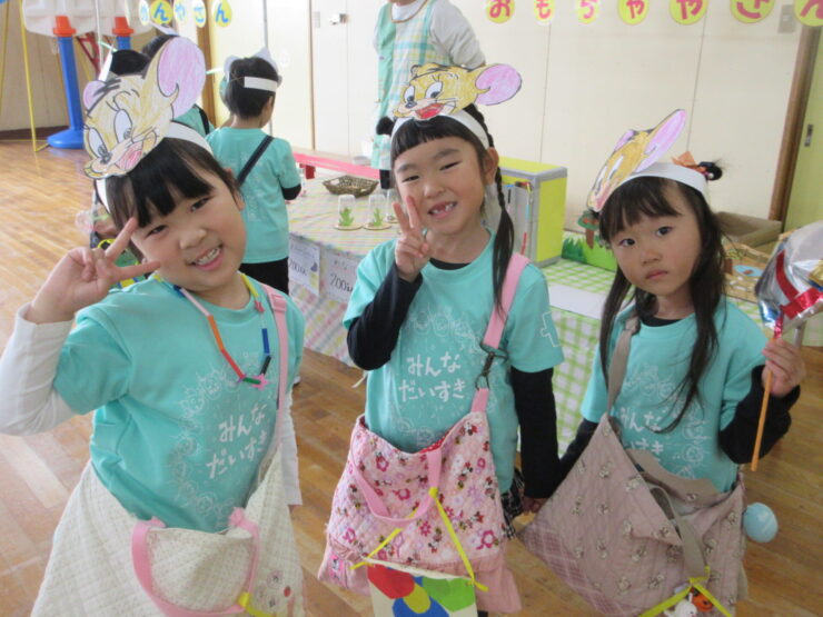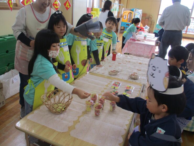 年長さんがお店屋さんになり小さいお友だちがお買いものをします。