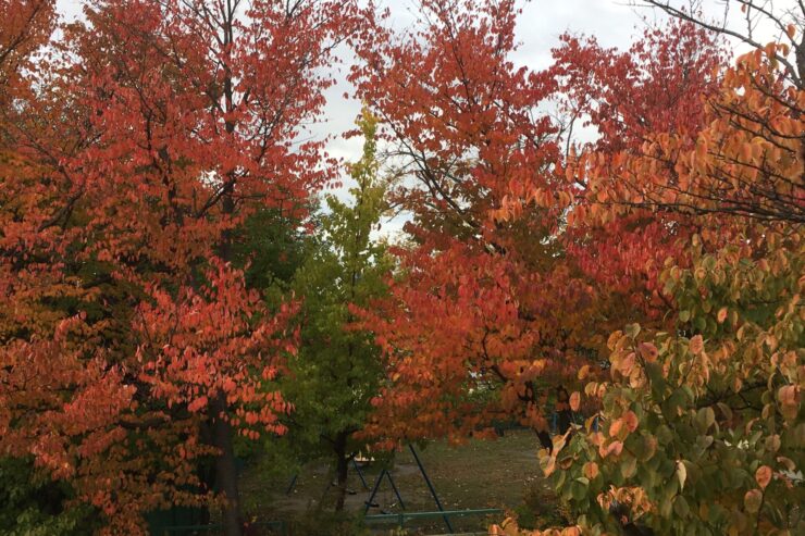 今週に入り紅葉が進み園庭がとてもきれいです。(2枚目はばら組さんからみえるさくらの紅葉です)