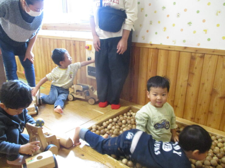 いつもより長い時間バスに乗り「まだかな~」とワクワクしていたみんな💛到着してすぐに元気いっぱい遊んでいました。