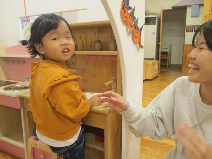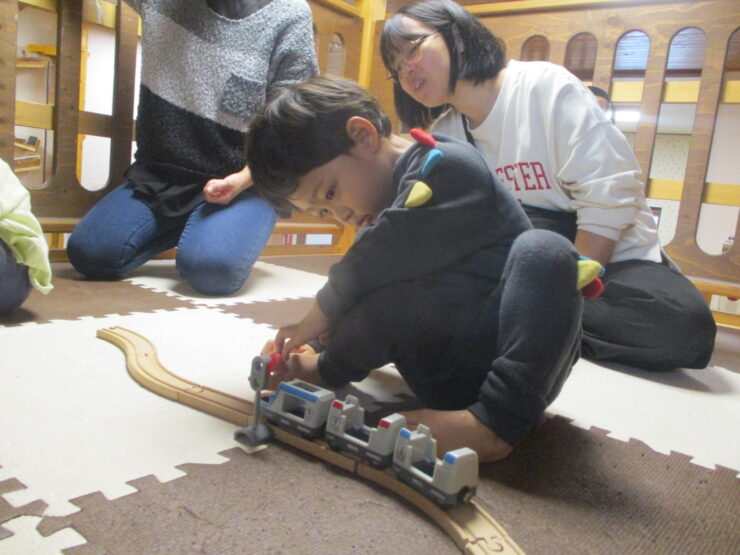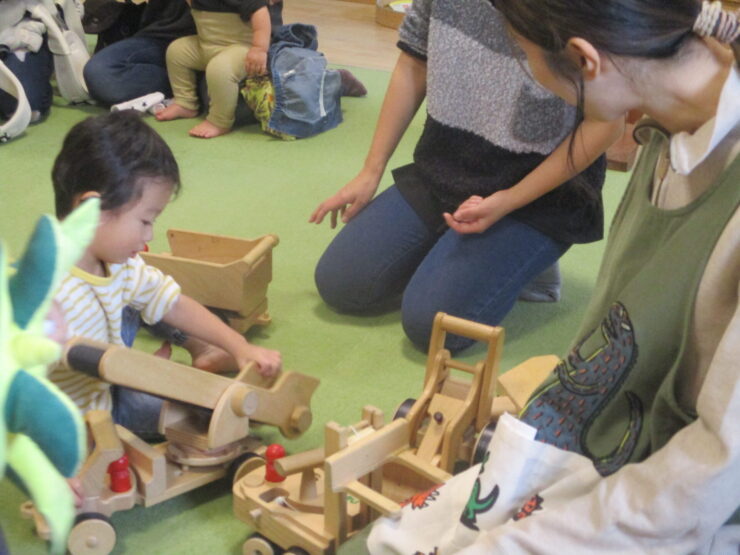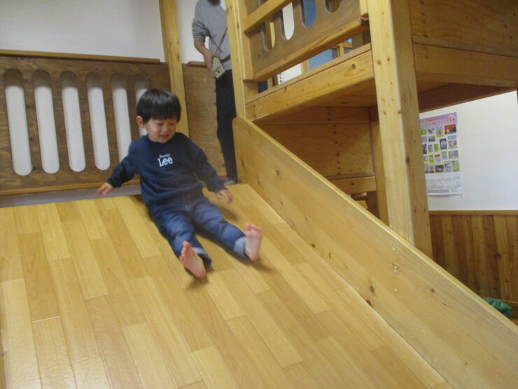 すべり台をしゅーと滑ったり、車のおもちゃでじっくり遊んだりとニコニコ!!