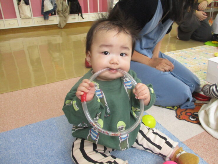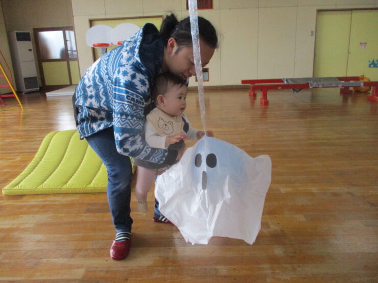 最後はお口がキラキラのおばけをもらって、興味津々なころころさんでした。