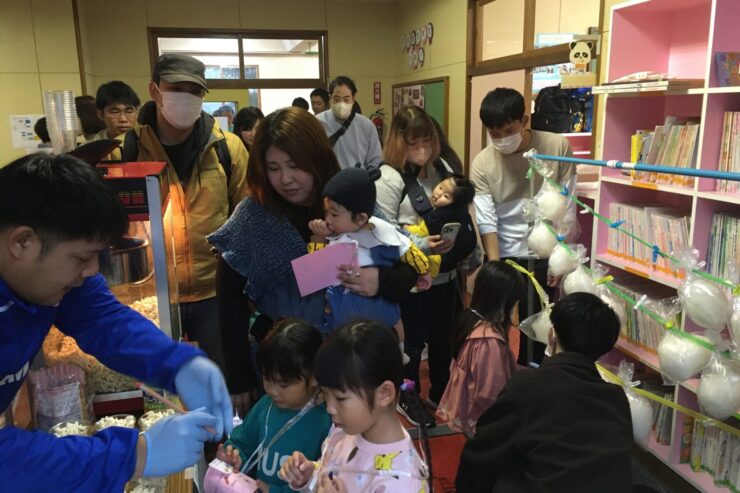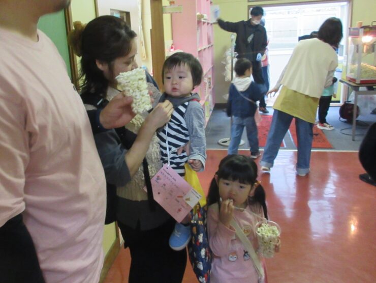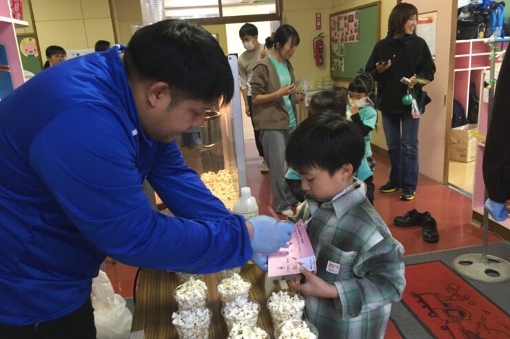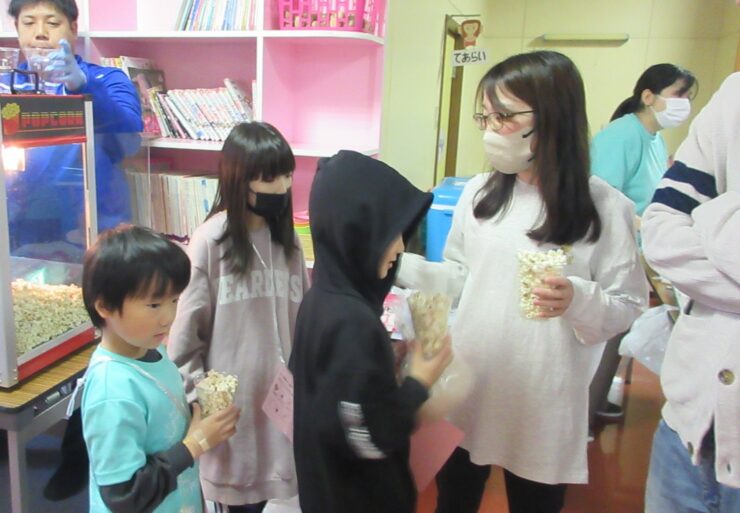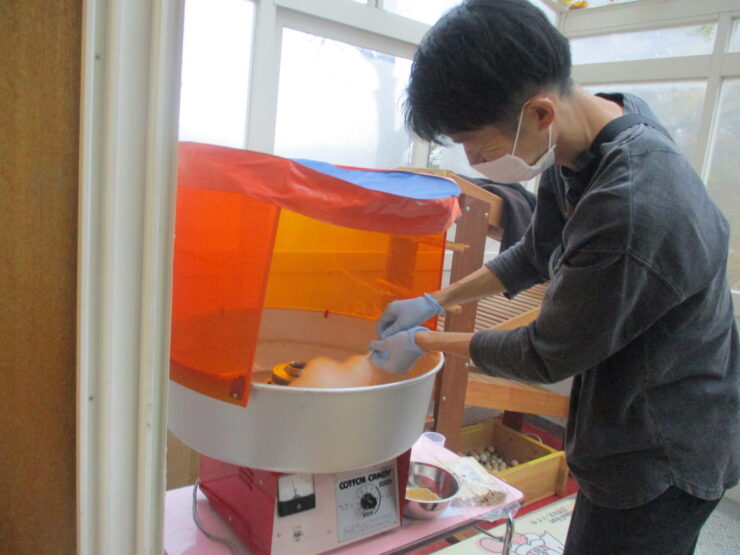 食べ物ブースでは、綿あめ、ポップコーン、ソーセージ、シフォンケーキがありました。どれも大人気でおいしかったです!