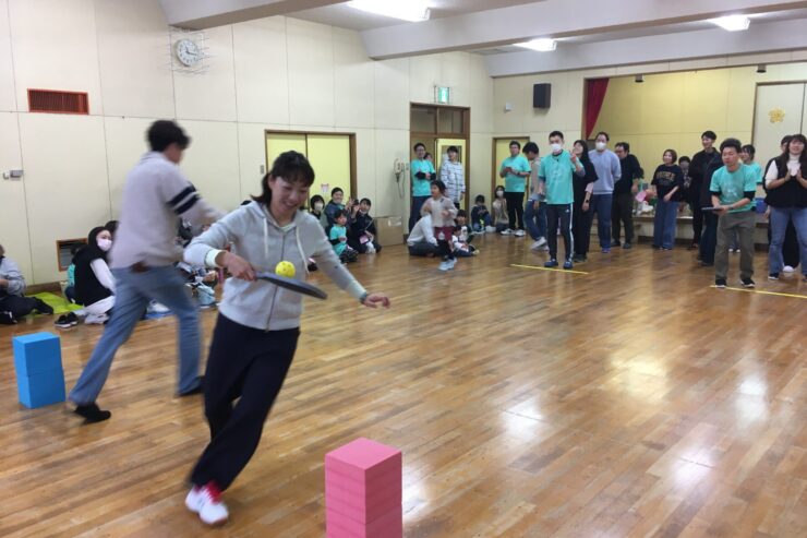 保護者の方にはラケットでボールを運ぶピックルボールリレーに参加してもらいました。たくさんの声援、そして優勝チームには豪華景品があり、なかなかの盛り上がりを見せました。