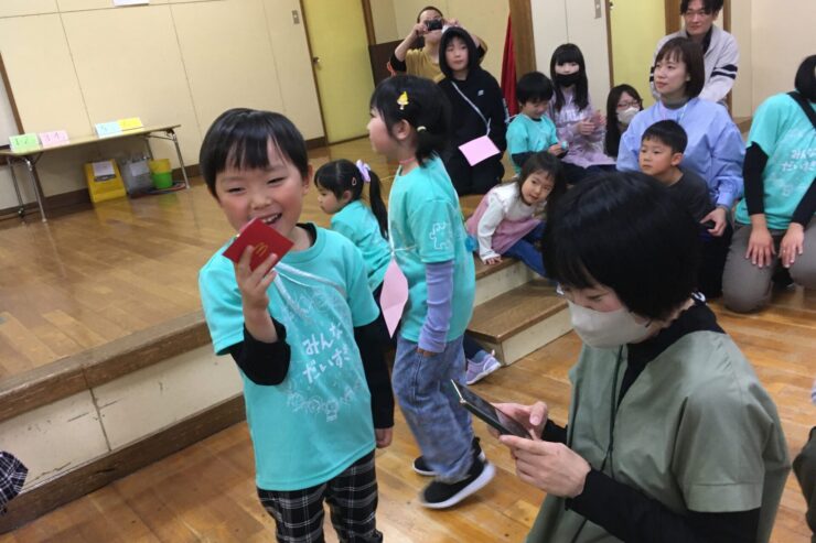 お祭りの最後は大じゃんけん大会です。みごと優勝したのはきく組さんのお友だちでした。