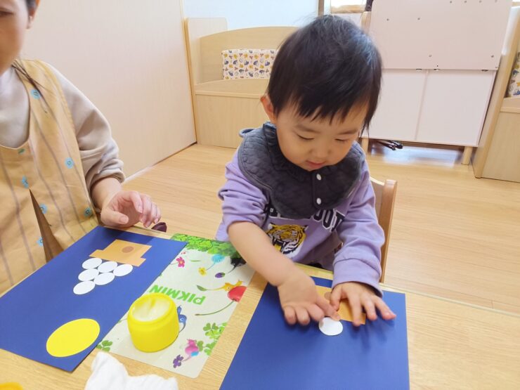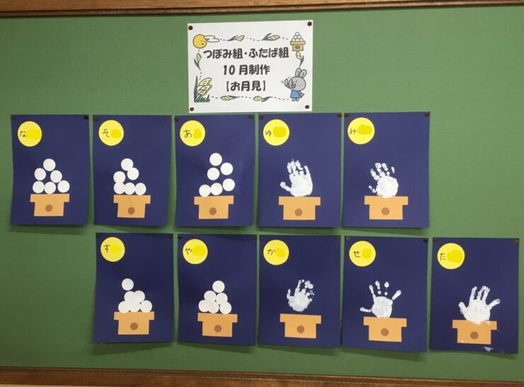 つぼみ、ふたば組の10月の制作「お月見」🎑2025.11.11今日のできごと10月の制作は「お月見」です。つぼみさんは手型を、ふたばさんは初めてのりを使いました。どちらもかわいいお月見が完成しましたよ💛今日のできごとさくら組の10月の制作「やきいも」🌟前の記事手作りパン、美味しかったね💛(ピヨピヨ教室)次の記事