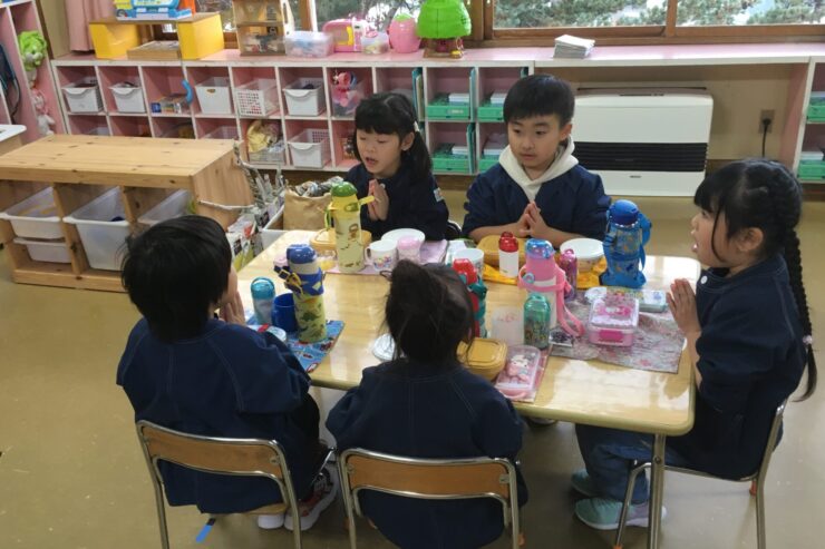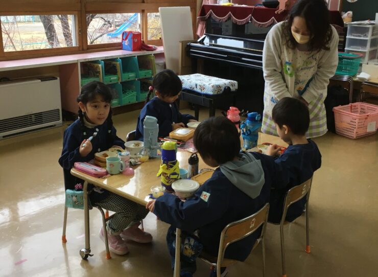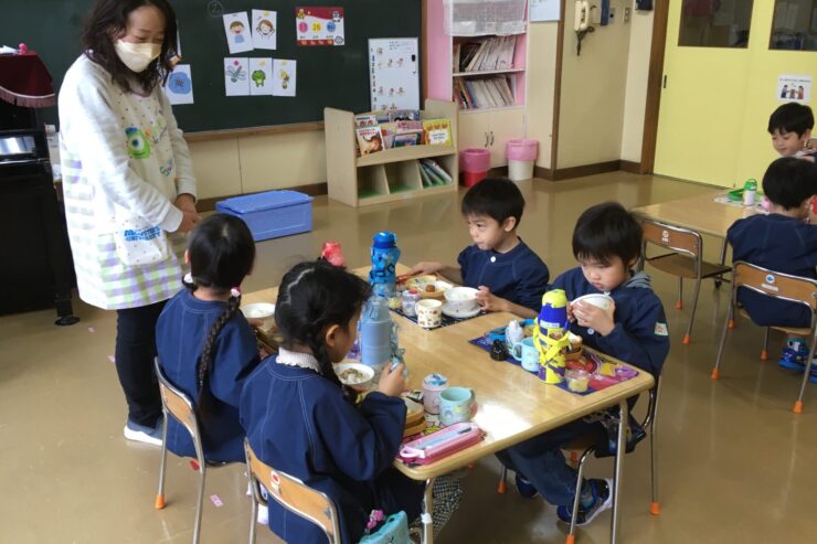もも、ばら組さんはいつもですがテーブルごとに楽しそうに食べていました。食後に舞台の動画を見たり、練習をしたり・・すべてが楽しそうです!(最近は本を読む子が増えています🌟)