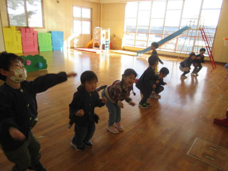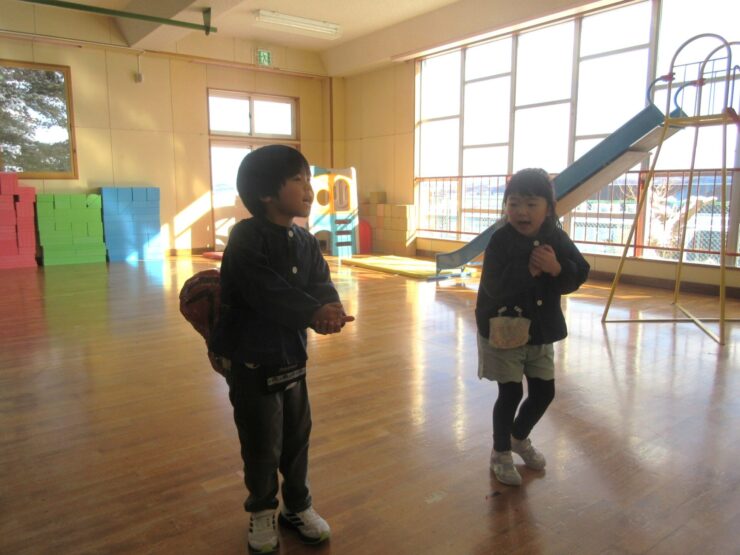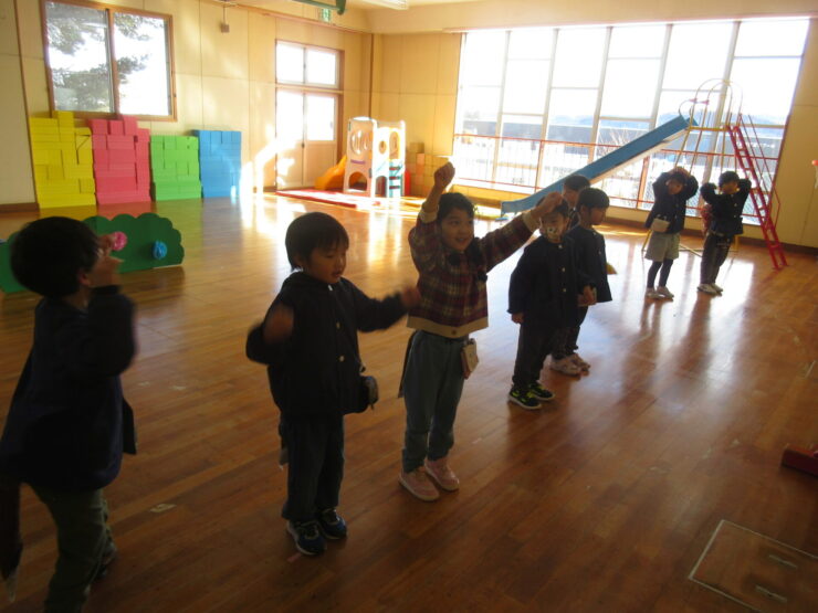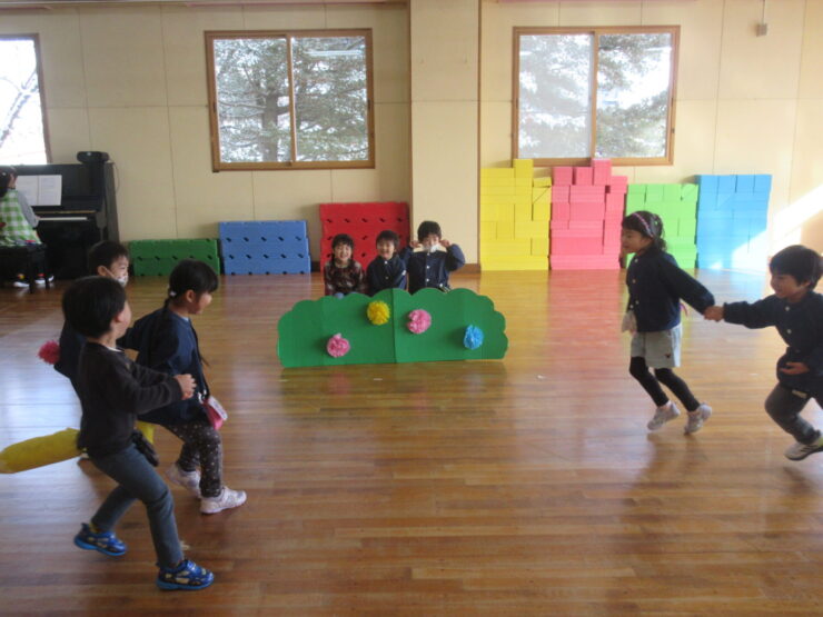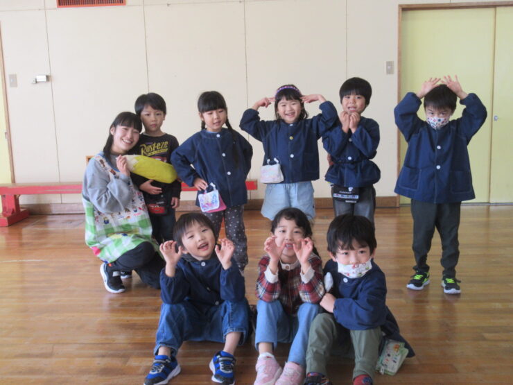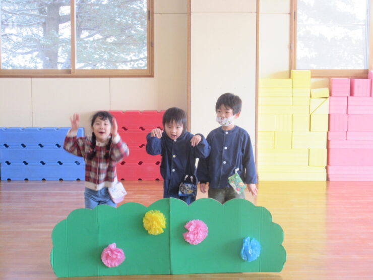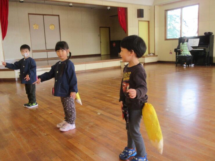 今日は発表会ごっこをしました。役はくじ引きで決め、かわいいしっぽを付けてお遊戯室へGO!