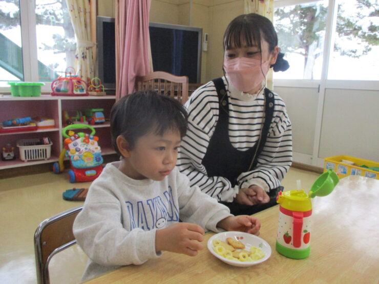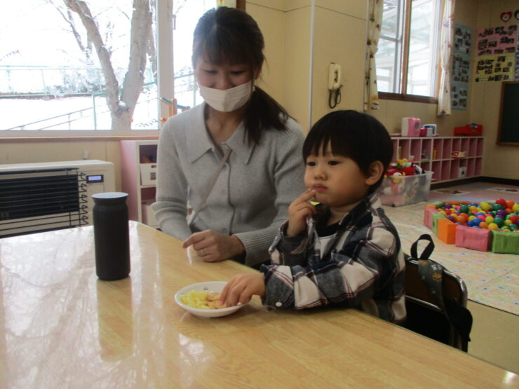 昨日降り積もった雪の中、元気いっぱい遊びに来てくれたぴよぴよ教室のお友だち💛
