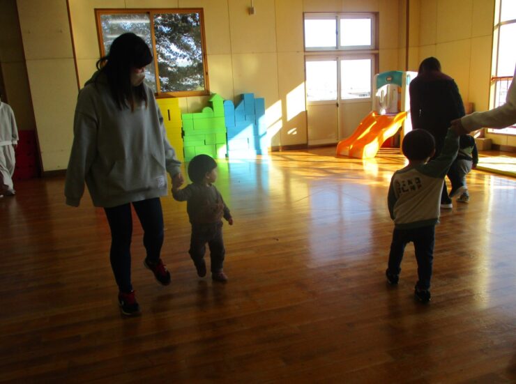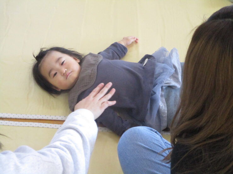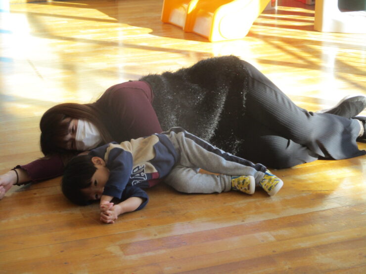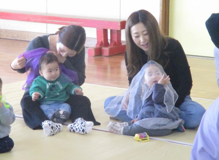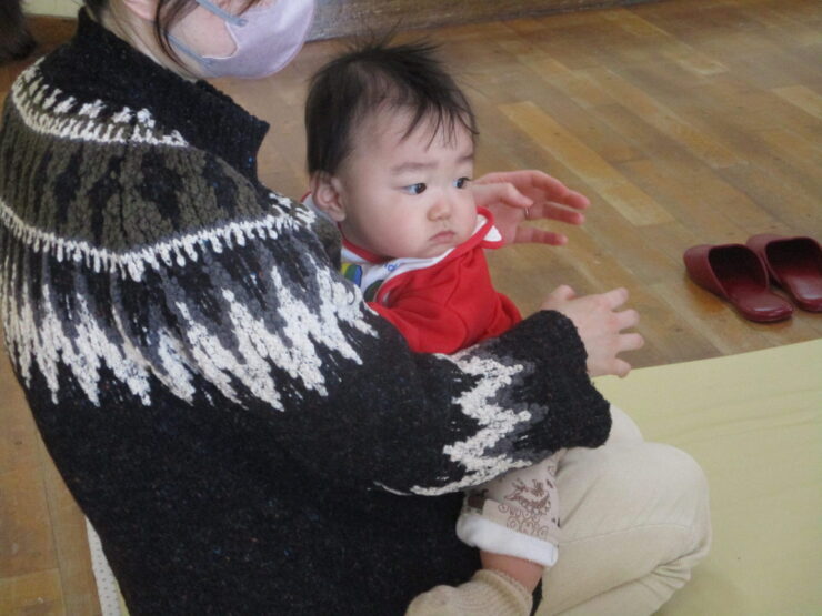 まずはピアノに合わせておうちの人と一緒に体を動かしたりリトミックスカーフをゆらゆらと揺らしたりして楽しみました✨