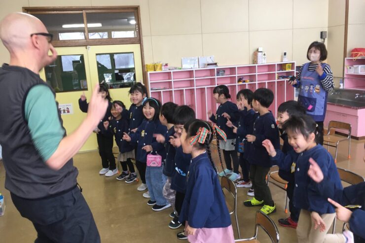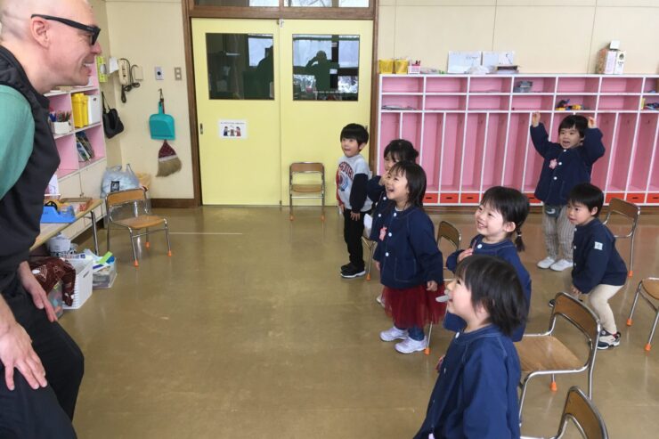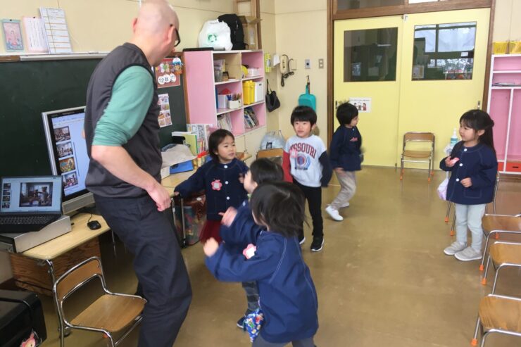 また後半はゲーム形式で聞いた英語の動作をしました。子どもたちはノリノリでとても楽しそうでした。