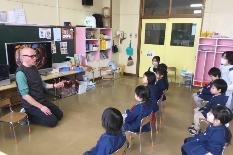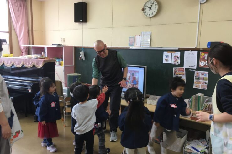 ダニエル先生との英語遊び・・これまでは子どもたちの活動に参加して慣れ親しむことが中心でしたが今日から少し本格的に英語活動が始まりました。