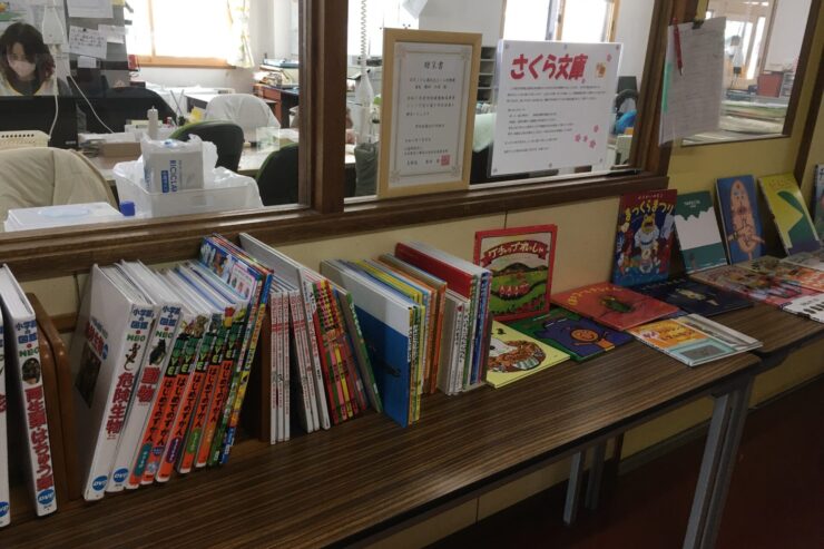 ※「さくら文庫」は今年、日本教育公務員弘済会様から20万円分の本の寄贈をいただき、少しでも読む機会を増やせるように、職員室前に掲示し貸し出しをしている本のことです。