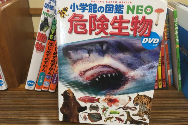 一番人気の本は何でしょうか?借りた冊数を調べたわけではありませんが、本のくたびれ度合いをみるとおそらくneoの図鑑の「危険生物」だと思います。こんなになるまで見てくれてうれしいです✨こういうちょっとこわいものが好きなんですね。