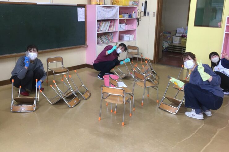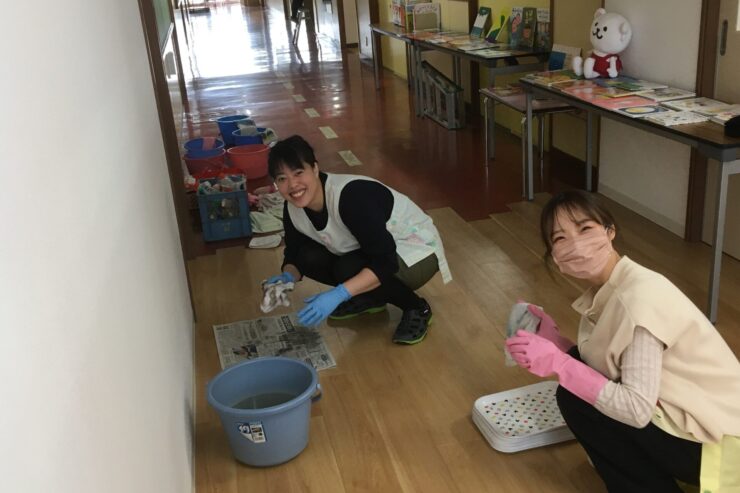 園舎の年数は経っているのですが「きれいに大事に使おう!」ということで夏休み・冬休みに入ると大掃除をします。