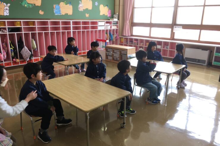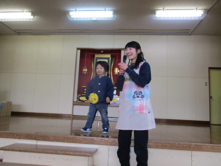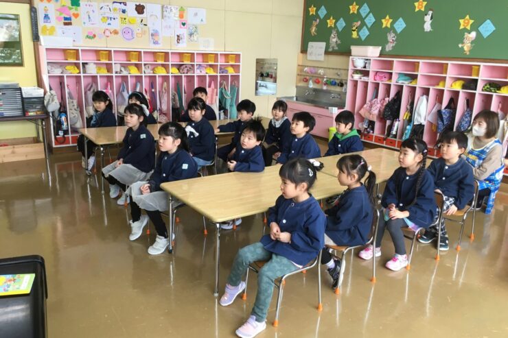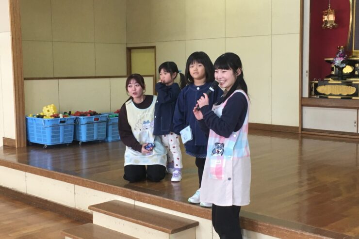 もも、ばら、きく組のお友だちからは一人ずつ冬休みの思い出を発表してもらいました。新しいお友だちの紹介、そして元気な歌声が響く始業式でした。