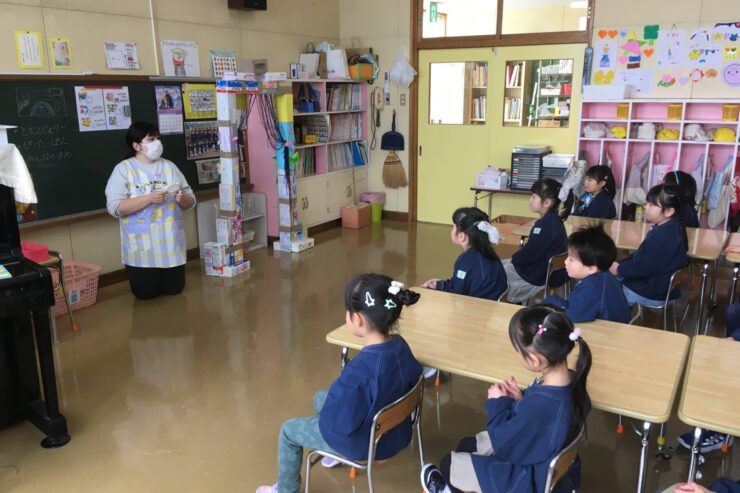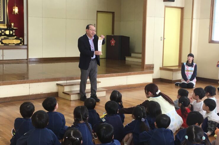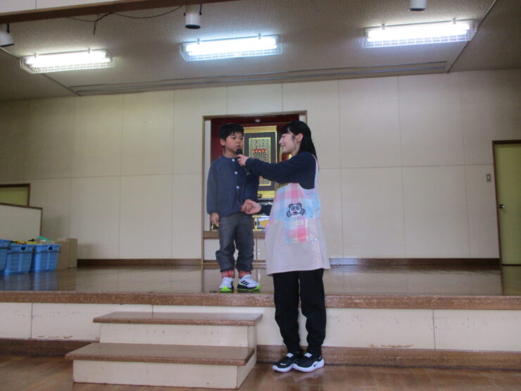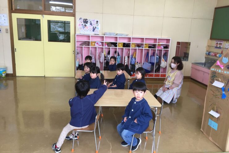 始業式では園長から「わくわくドキドキの毎日にしよう」と秘密の巻物のお話しをしました。(秘密の巻物は玄関にかけてあります)