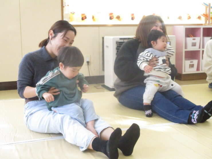 ふれあい遊びの「バスごっこ」もみんなニコニコで楽しみました!!