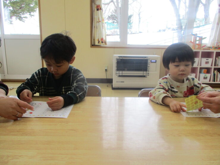 お部屋で出席カードにシールを貼り、肝油を食べてから幼稚園バスに乗って小泉東公園へお出かけに行きました🎶