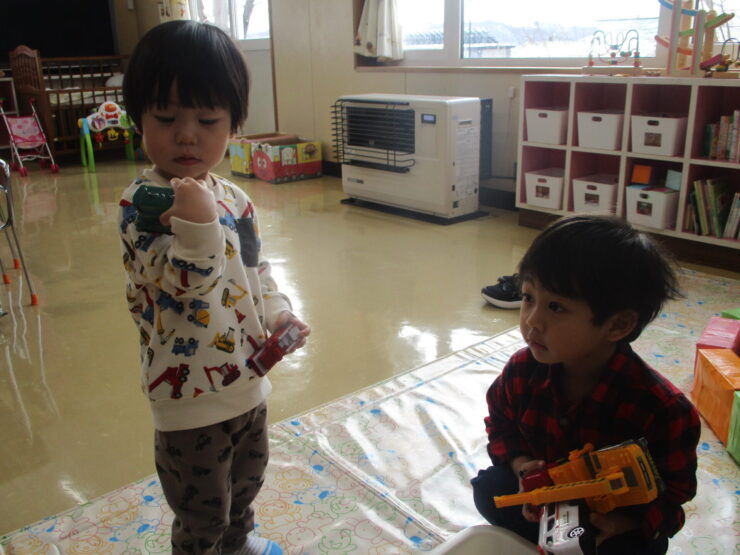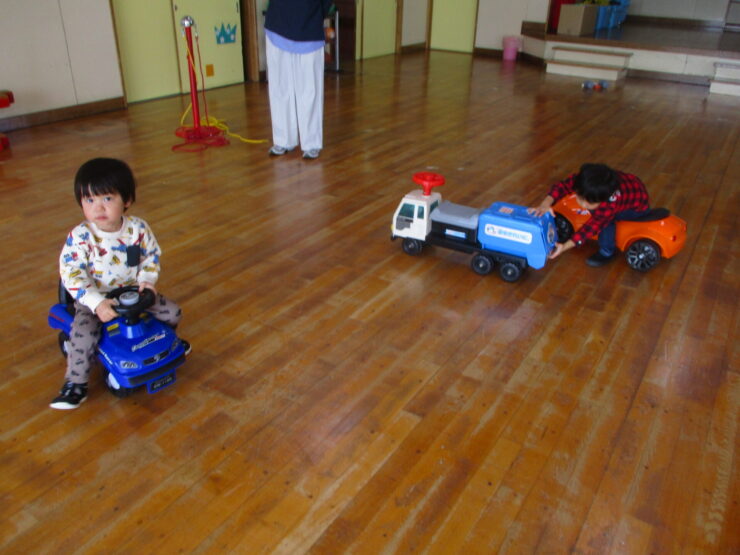 おやつの後は大好きな車に乗って元気いっぱい遊びました!