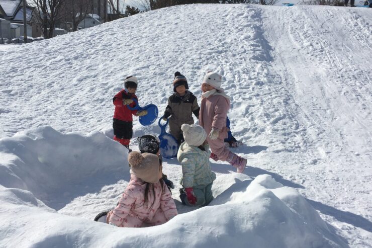 そり滑りが中心でしたが、雪のおうちに入ったり転がったり、思い思いに遊びました。