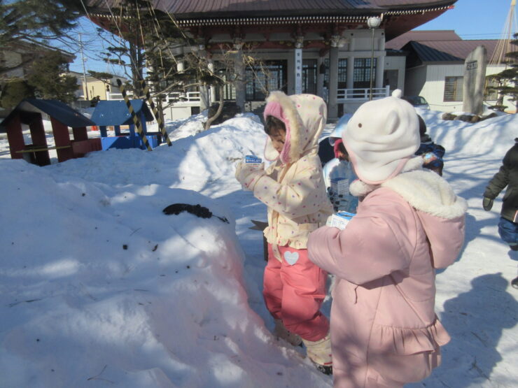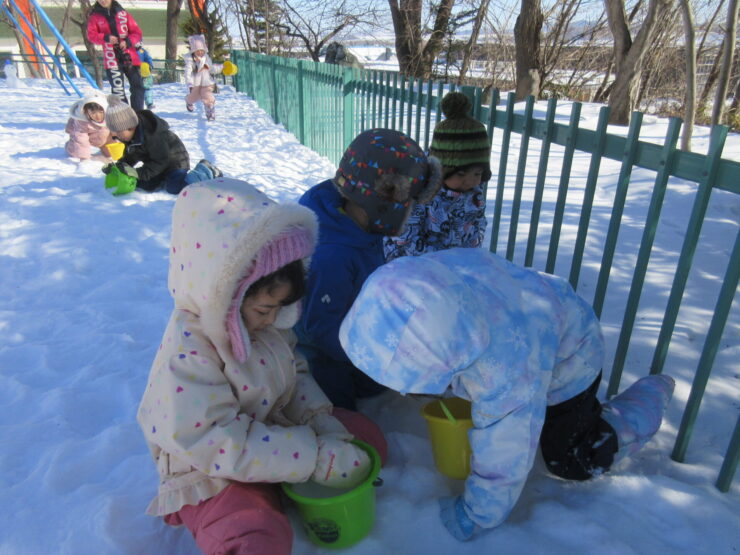今日はスノーフェスタに向けてお花紙を使ったアイスキャンドルとバケツに雪を入れて固めたオブジェを作りました🌟
