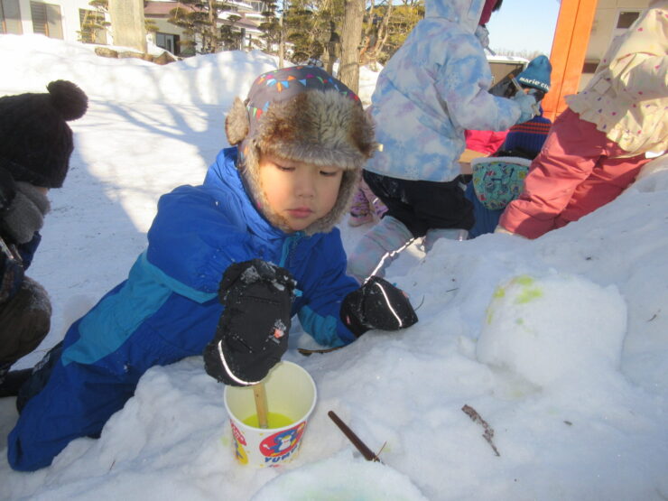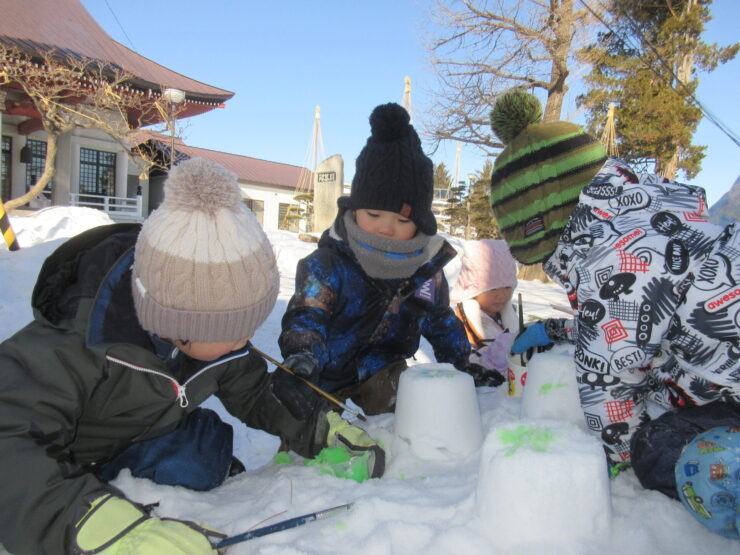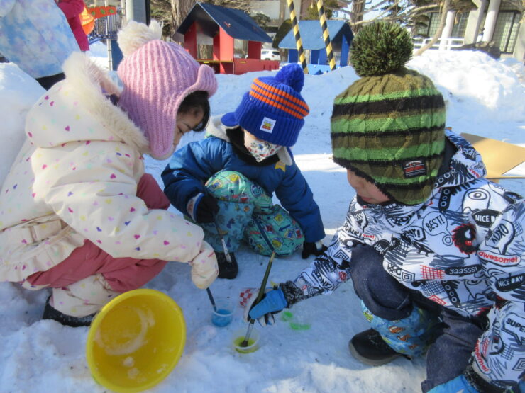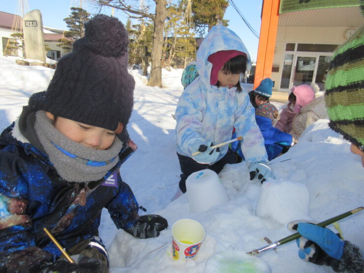 オブジェの仕上げには色水を筆でつけ、とっても素敵な作品ができました!スノーフェスタでは皆さんに見てもらいたいです💛