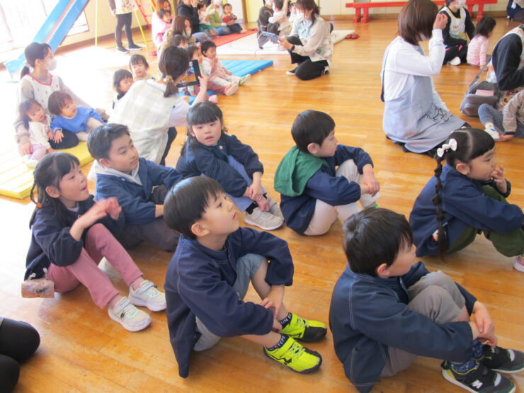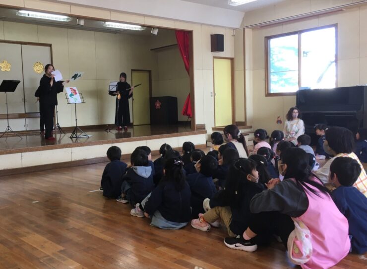 今日はフルートとクラリネットを演奏される「nuit(ニュイ)」さんがさくら幼稚園に来てくださり、子どもたちにミニコンサートを開いてくれました。