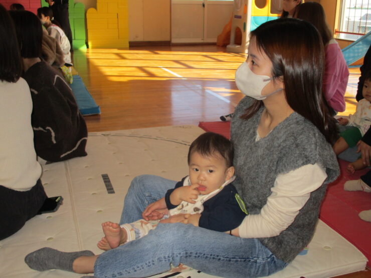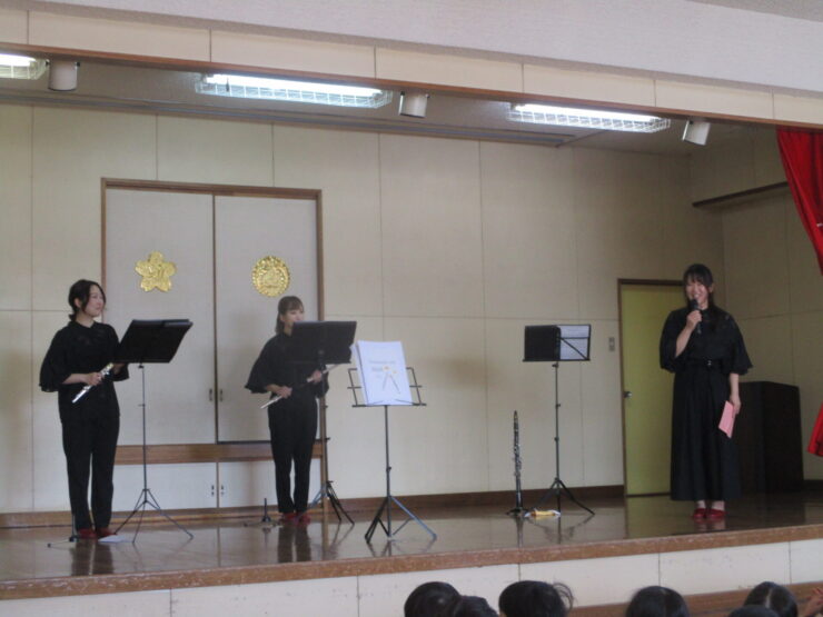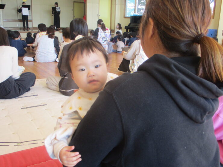 お遊戯室で行ったフルート・クラリネットのミニコンサートを在園児のお友だちと一緒に楽しみました♪