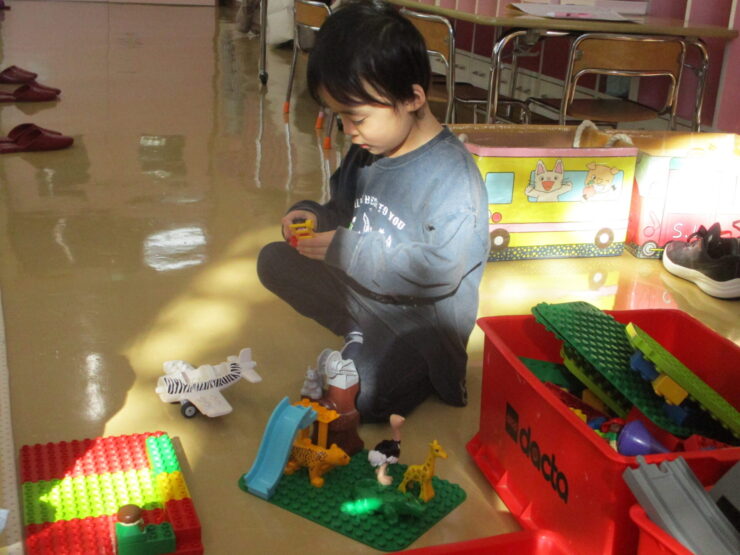 その後はお部屋とお遊戯室で自由に遊びました。ひな祭りの足形アートはみんな上手にぺったんできましたね🌸