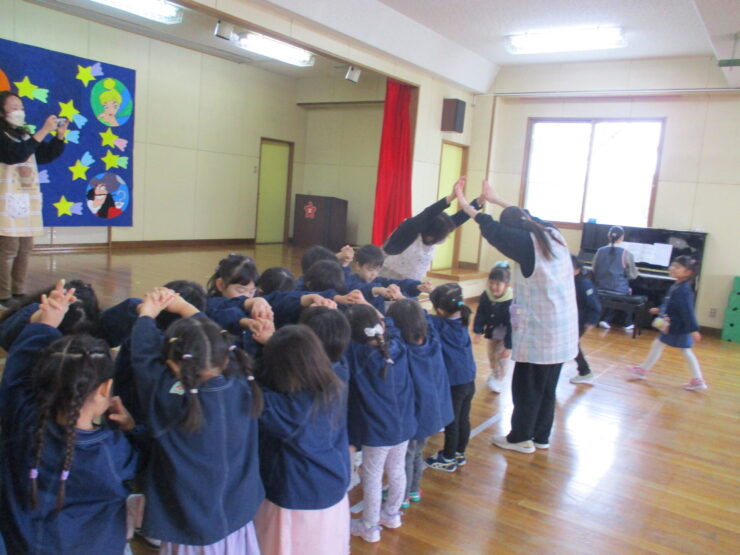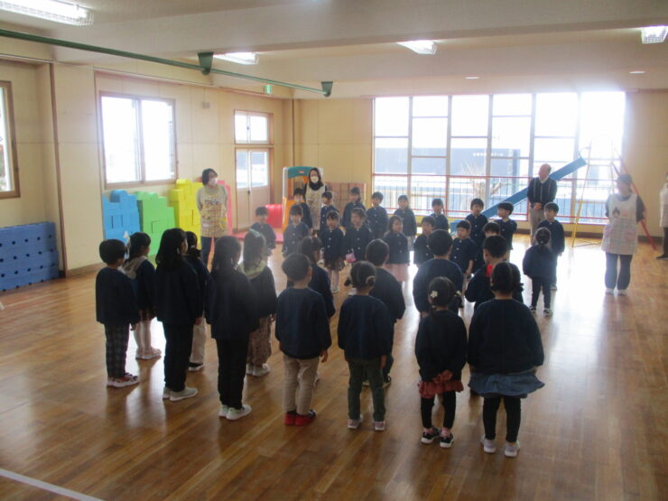 今日は14日に卒園する年長さんに、これまでの感謝の気持ちを込め、楽しい一時を過ごす「年長さんを送る会」がありました。