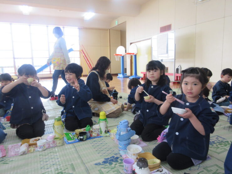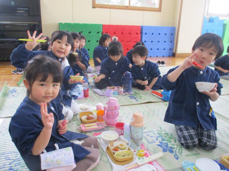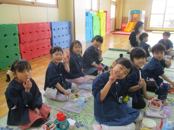 お昼はみんな一緒に食べました。