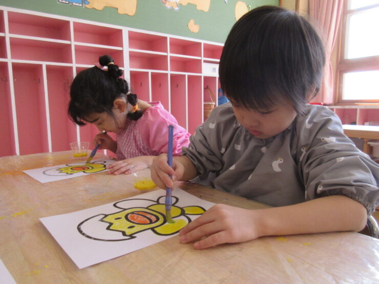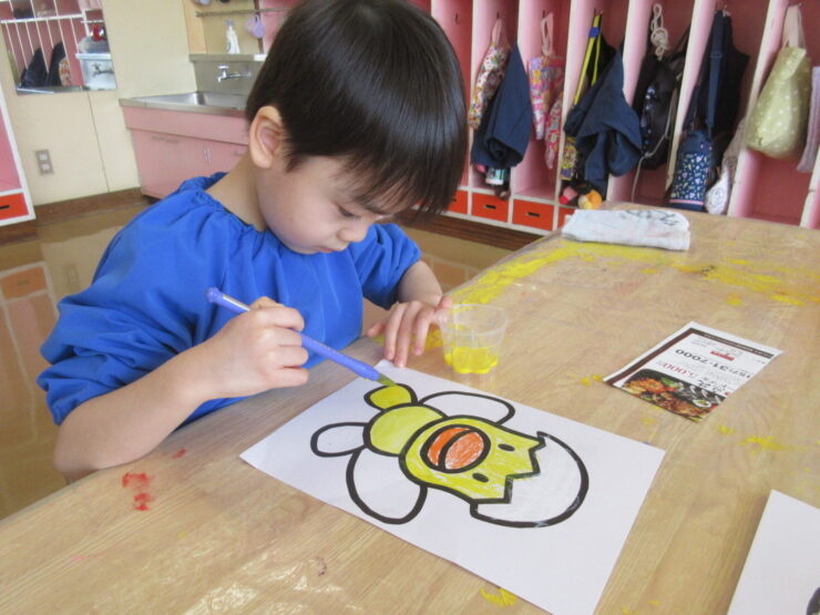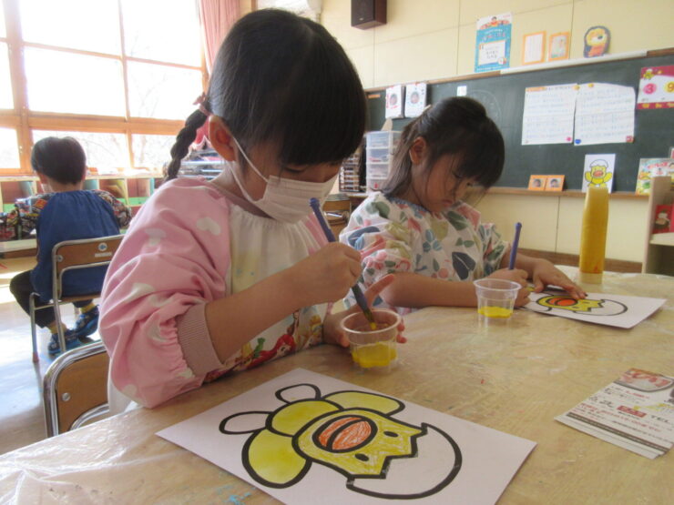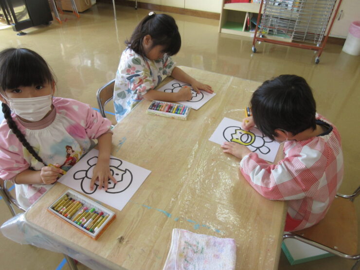 絵の具あそび(ばら組)🌟2026.03.12今日のできごとこの日はクレヨンで顔を、絵の具で体の色を塗る作品作りを行いました。クレヨンで塗る時には「縁取りをしてから中を塗るんだよね!」と言い丁寧に行いました。絵の具では同じところを何度も塗るとどうなるか質問すると「紙が弱くなっちゃう!」「水たまりができちゃう!」とよく理解して取組んでいたばら組さんでした💛今日のできごときく組さんありがとう!~年長さんを送る会💛前の記事