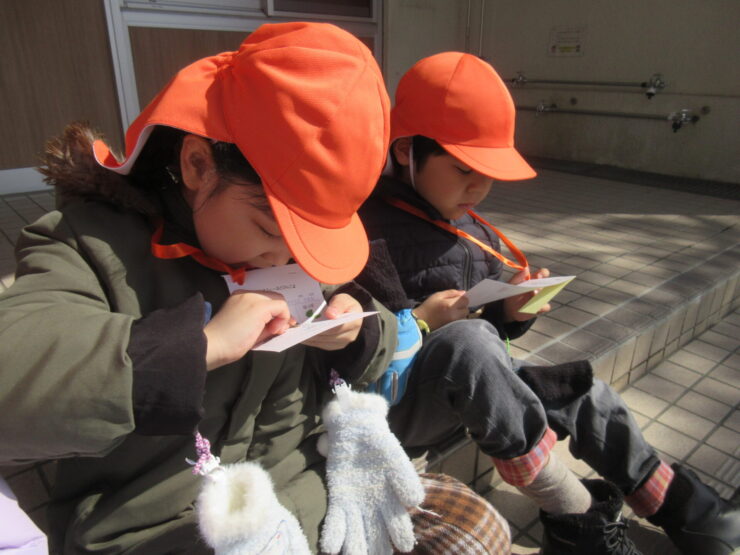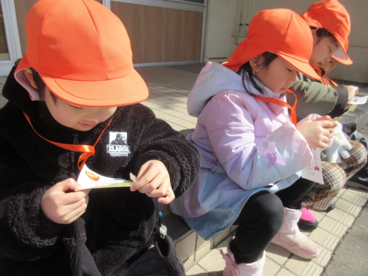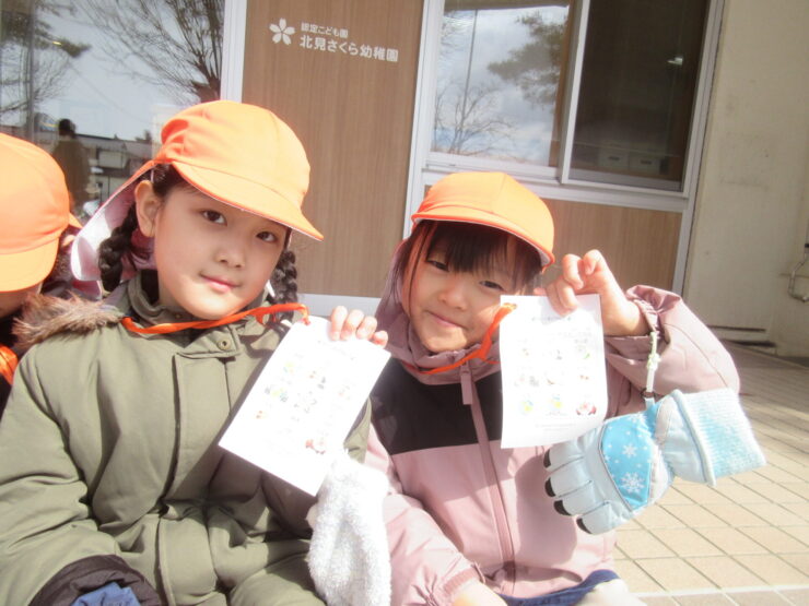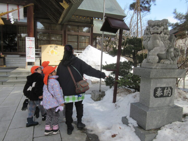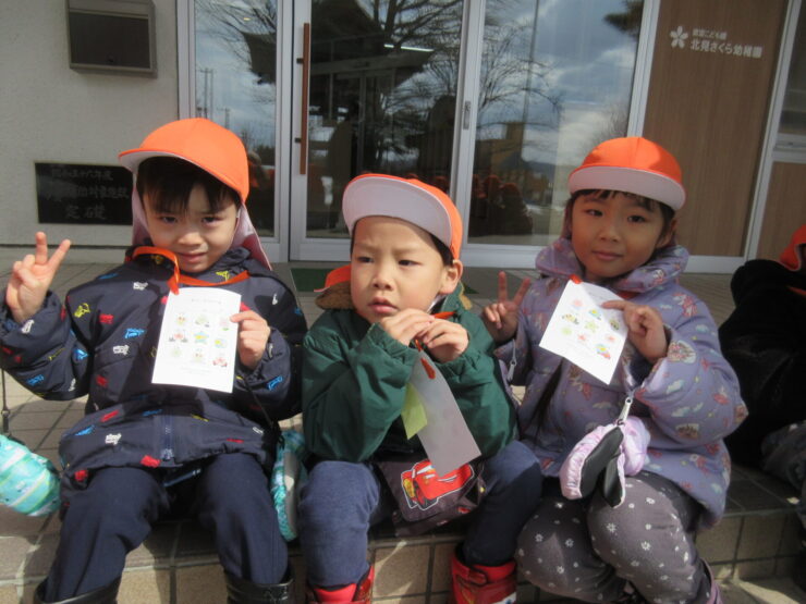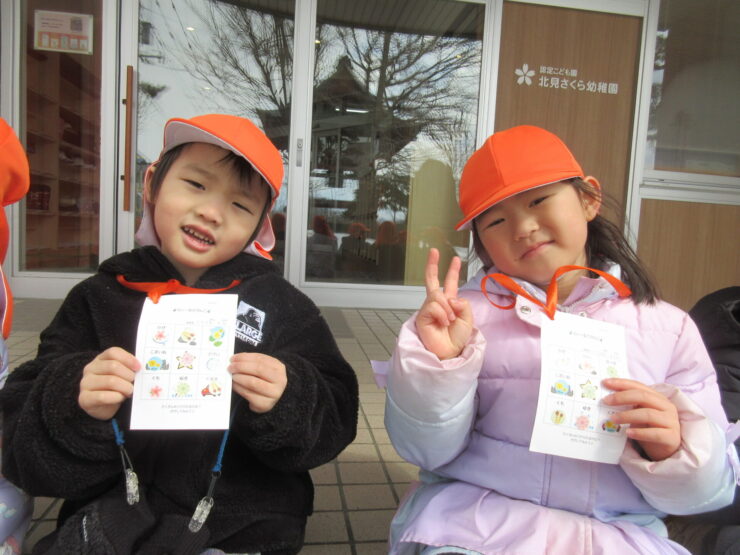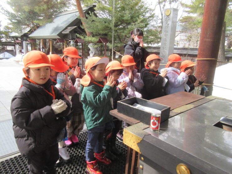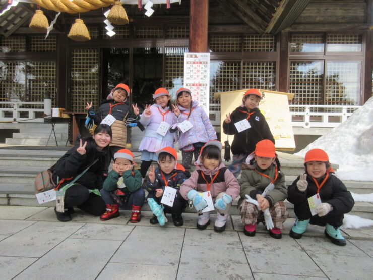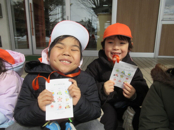 おさんぽでフィールドビンゴ!(ばら組)2026.03.19今日のできごとこの日は神社さんへお散歩に行きました。ビンゴカードを1枚持ち、”雲”や”雪”など、見つけたところにシールを貼りました。「ビンゴできた!」と、とてもうれしそうでニコニコしていましたよ😊みんなでお参りもできました!今日のできごともも組のお部屋にお花が咲いたよ🌸前の記事