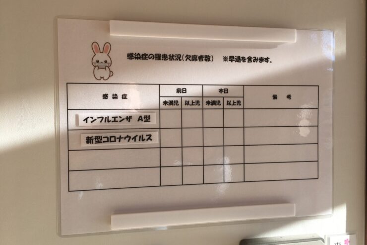 玄関に「感染症罹患状況」を掲示していますので、感染対策等に役立てていただければと思います。